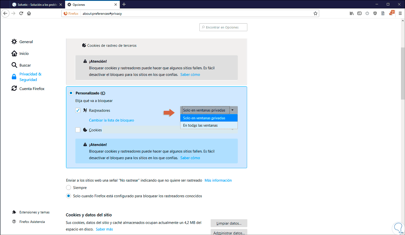 4. Cómo bloquear rastreadores en las navegaciones privadas en Firefox Quantum