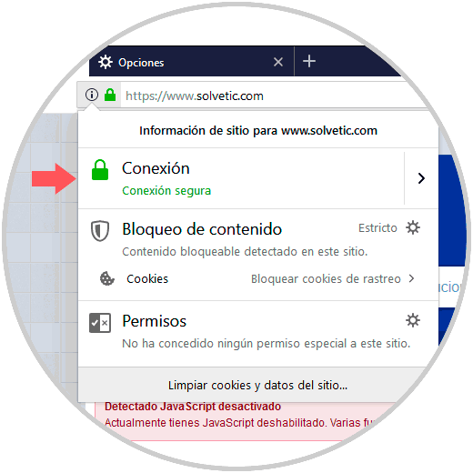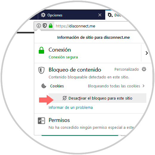 - Deshabilitar bloqueo para esta página si estamos usando una ventana de navegación normal.