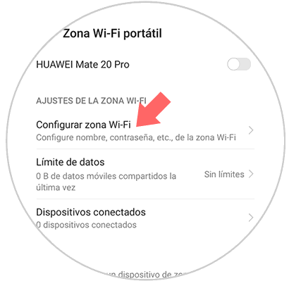 Ahora procederás a encontrarte en el lugar donde puedes configurar tu zona Wi-fi portátil. Aquí, tienes que buscar la sección llamada “Ajustes de la zona Wi-fi”, y a continuación debes presionar la primera opción, la cual tiene el nombre de “Configurar Zona Wi-fi”.
