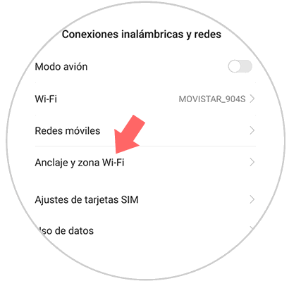 Luego, ve a la pestaña de “Anclaje y zona Wi-fi” y selecciónala.