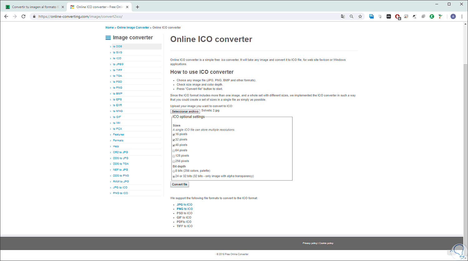 1. Cómo convertir imágenes JPG o PNG a ICO usando un convertidor en línea