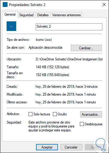 Allí automáticamente se desplegará una ventana emergente donde seleccionamos la ruta donde se ha de guardar dicho archivo convertido, y al acceder a sus propiedades comprobamos que realmente es un archivo .ico: