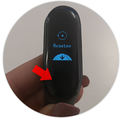 La banda te pedirá que dejes pulsada la parte hundida de la pantalla para confirmar que quieres resetear el dispositivo. Haz esta acción dos veces para confirmar la acción.