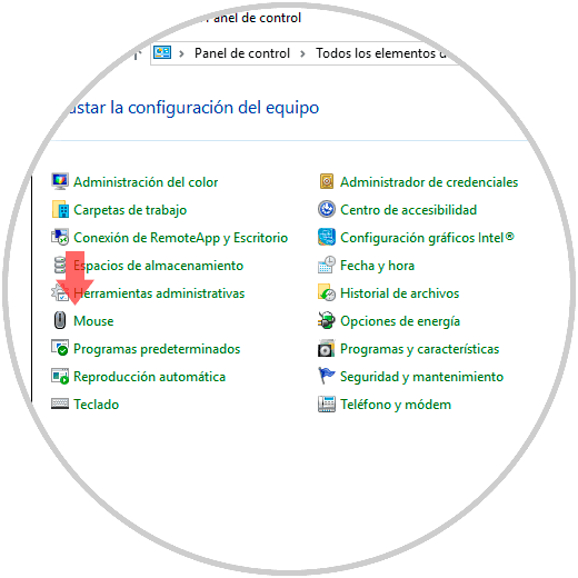 - Todos los elementos de Panel de control