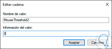Ahora abrimos el valor “MouseThreshold1” y establecemos su valor en cero. Pulsamos en Aceptar para aplicar los cambios.