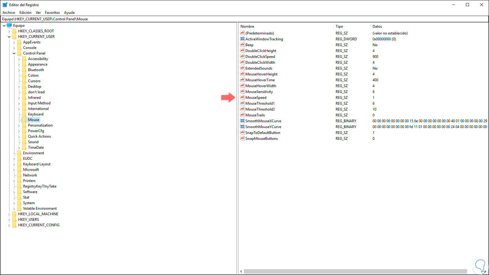 2. Editar la sensibilidad del mouse desde el Editor de registros de Windows 10