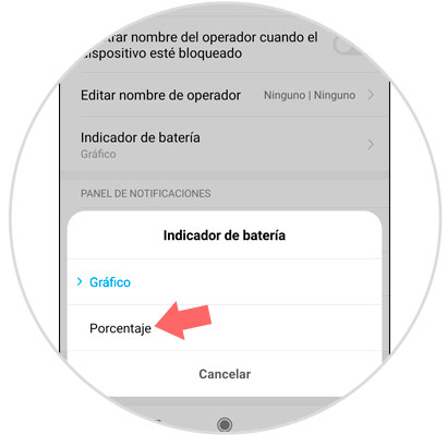 Al darle click en esta última opción, te saldrá una ventana emergente; y como veras, se encontrará resaltada de forma predeterminada la opción de “Gráfico”, sin embargo, para que se muestre la cantidad de energía que tiene la batería en todo momento, tienes que darle es en “Porcentaje”.