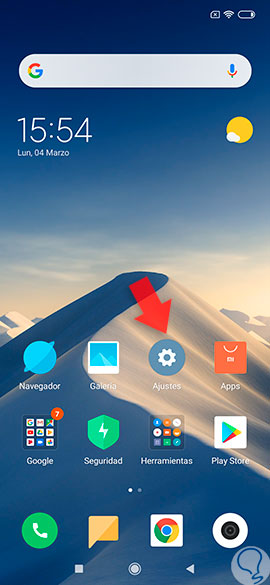 Primero, deberás acceder al menú principal de las aplicaciones de tu Xiaomi Mi 9 y seleccionar los “Ajustes”.