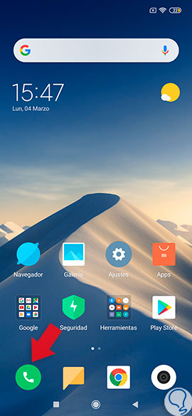 Lo primero que deberás hacer es ir a la pantalla principal de tu Xioami Mi 9 y pulsar sobre el ícono que corresponde con “Teléfono”, ya que es allí en donde conseguiremos el contacto a bloquear.