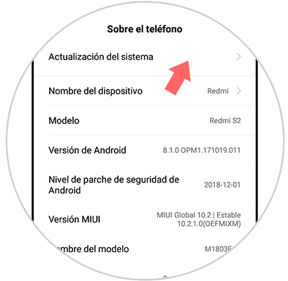 3. Cómo actualizar Xiaomi Redmi S2 a la última versión para solucionar error de Bluetooth