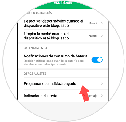 A continuación, en la pantalla te aparecerá la opción de la función "Programar encendido/apagado", que debes seleccionar para poder continuar con el procedimiento.