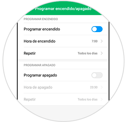 Al entrar a esta función específica del Xiaomi Redmi S2, tendrás la posibilidad de configurarlo a tu gusto. Vas a poder programar la hora en la que vayas a querer que se realice el apagado y encendido del dispositivo, así como también modificar la frecuencia con la que lo va a realizar. Una vez que hayas terminado de configurarlo, solo debes guardar los cambios realizados.