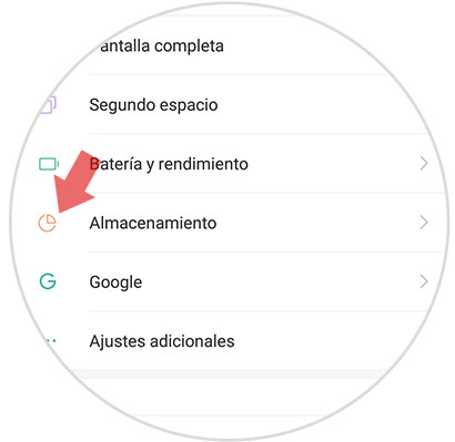 Lo siguiente, es que una vez realizado esto, tienes que desplazarte entre las alternativas hasta encontrar y presionar “Almacenamiento”.