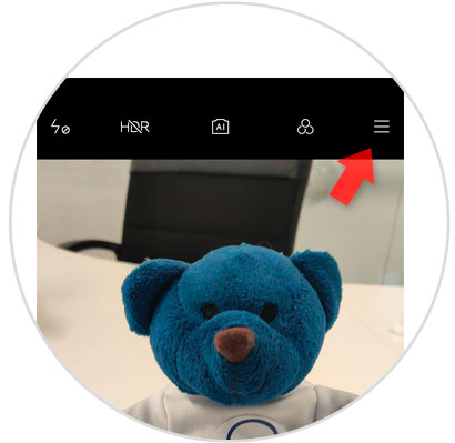 Como veras, dentro de la cámara, justo en la parte superior derecha, encontraras un icono de tres rayas horizontales ordenadas verticalmente, deberás pulsar sobre esta opción.