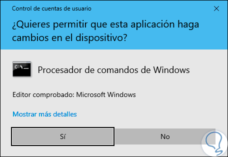 Se desplegará el siguiente mensaje del control de cuentas de usuario el cual debemos aceptar: