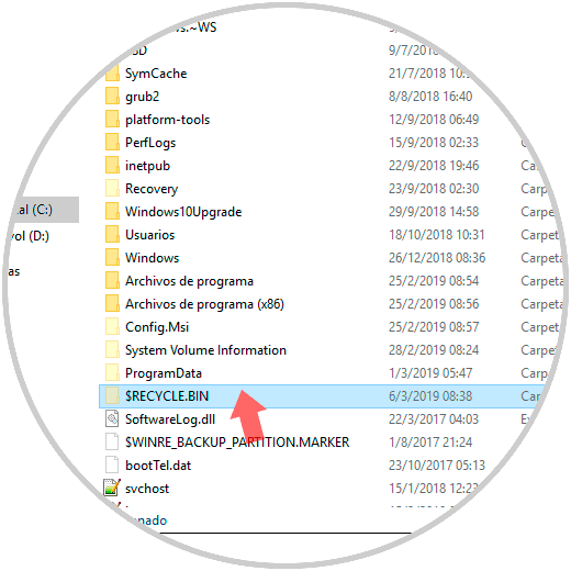 Ahora podemos ir a cada unidad y allí ver la carpeta Recycle Bin: