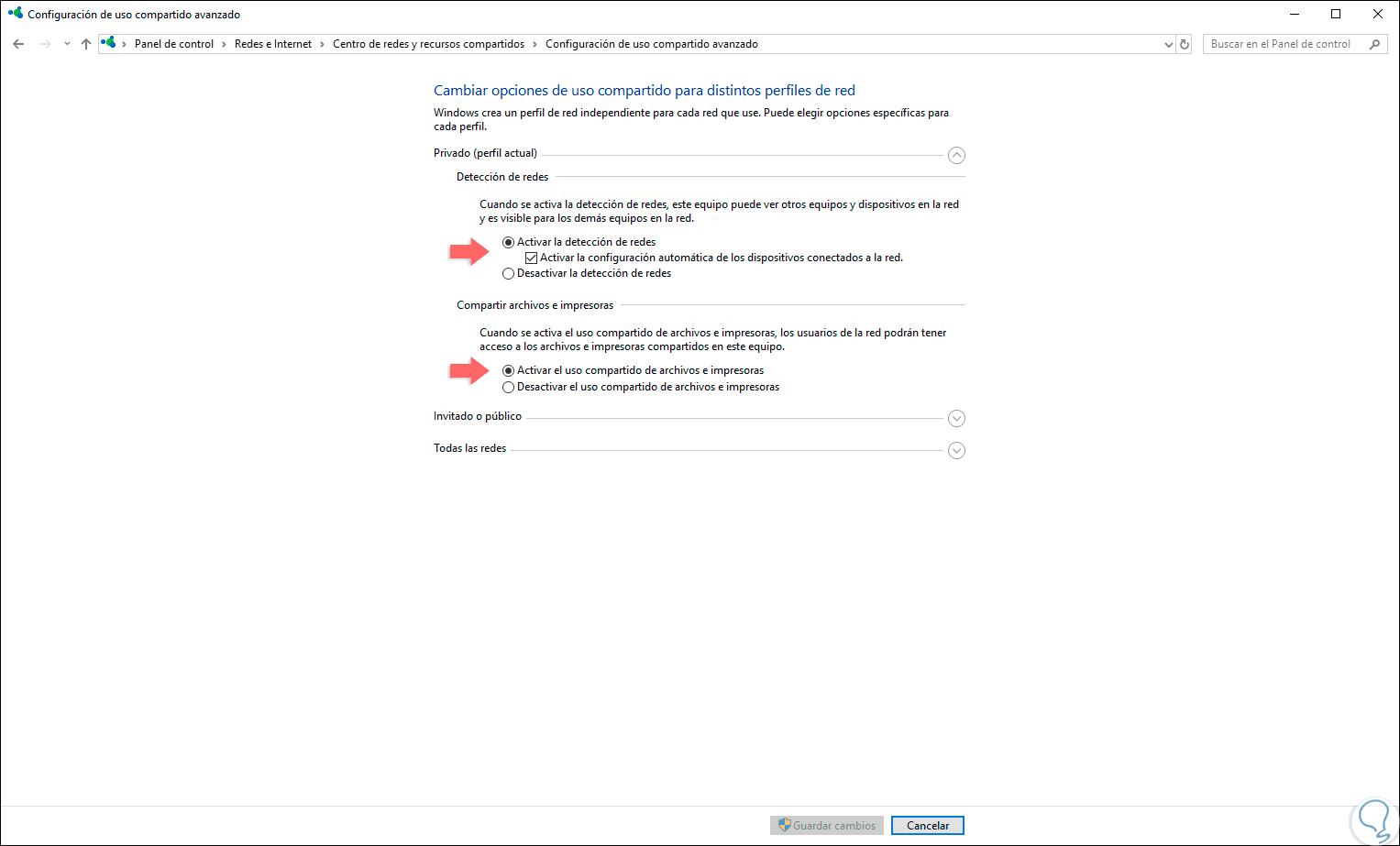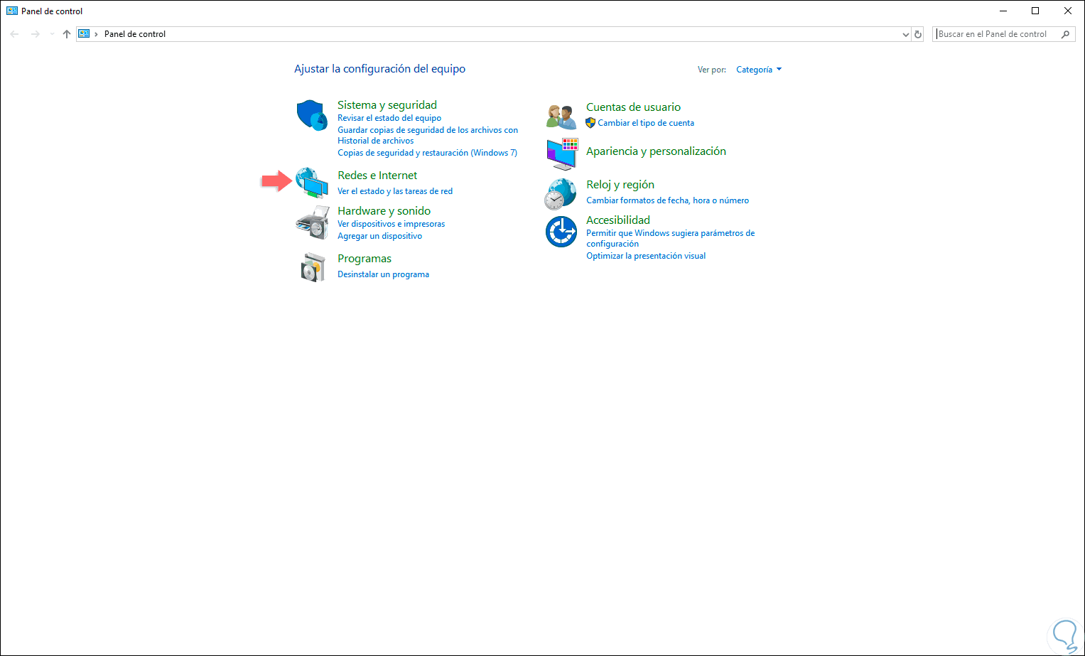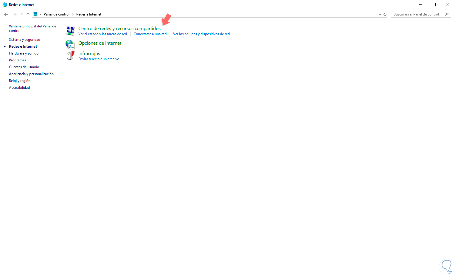 Ahora es turno de realizar el proceso en Windows 10, para este caso el primer punto es habilitar la opción de compartir en el sistema, para ello vamos al Panel de control: