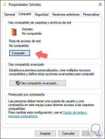 En la ventana que será desplegada vamos a la pestaña “Compartir”: