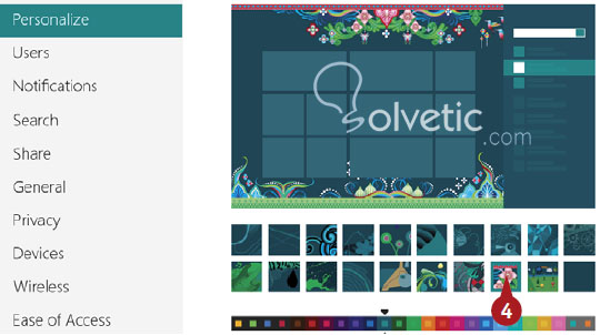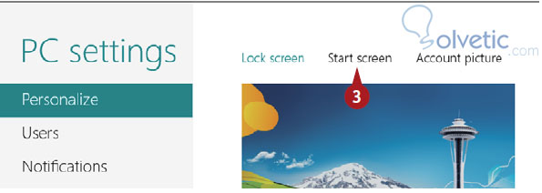 [color=#B22222]3.[/color] Hacemos click donde dice Pantalla Inicio (Start Screen) y nos aparecerá nuestro pantalla de inicio y una lista de imágenes y colores de fondo entre las cuales escoger.
