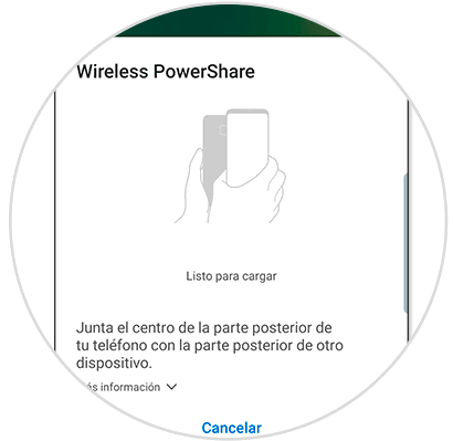 Ahora tu Galaxy te indicará cómo debes de colocar tu teléfono con el otro dispositivo para que comience a cargarse.