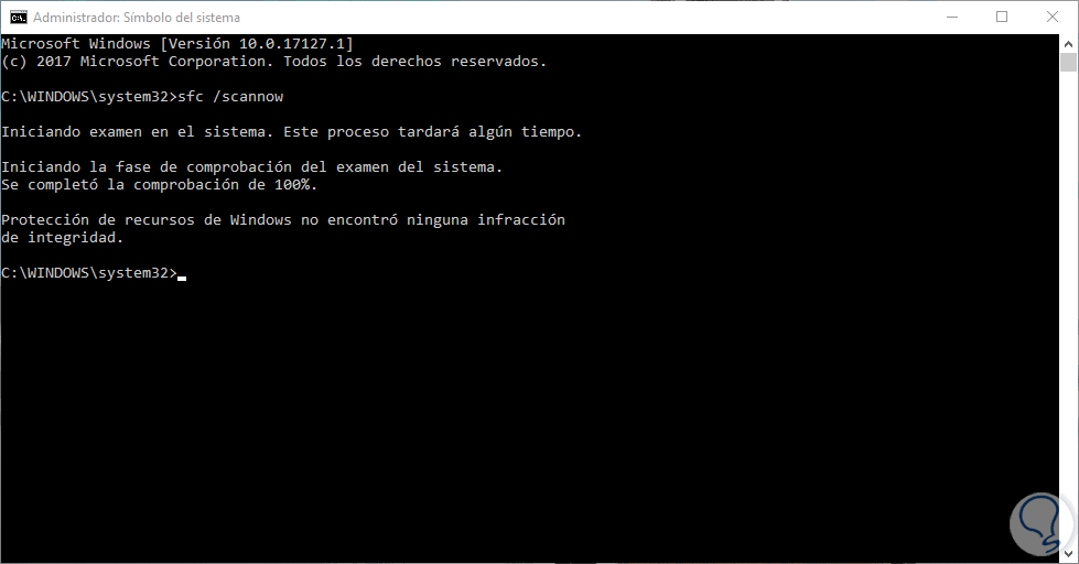 sfc/scannowEl comando SFC se encarga de analizar y reparar el sistema de archivos de Windows 10 en caso de detectar algo con error.