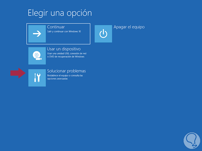 Allí seleccionamos la opción Solucionar problemas y ahora veremos lo siguiente: