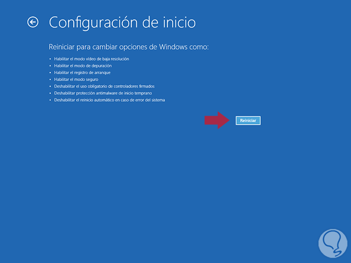 Allí damos clic en el botón Reiniciar y a continuación definimos el tipo de modo seguro a usar: