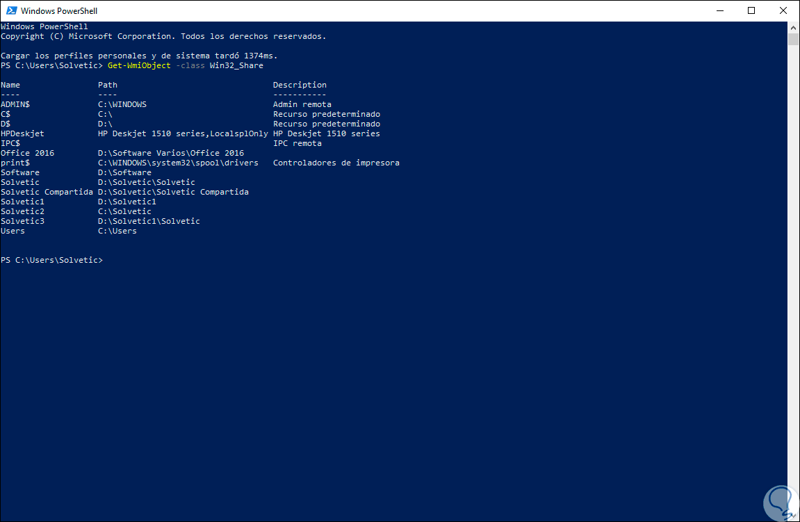 4. Ver carpetas compartidas a través Windows PowerShell en Windows 10