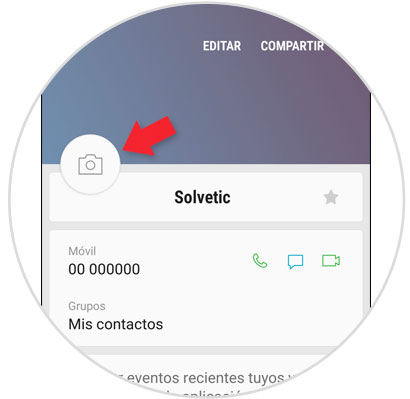 Accederás a la información de este contacto. En la parte izquierda tienes un círculo con un icono de una cámara dentro. Es aquí donde tienes que pulsar para añadir una foto.
