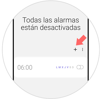 Desde aquí puedes añadir una nueva alarma en el símbolo de "+" y así crearás una desde cero.