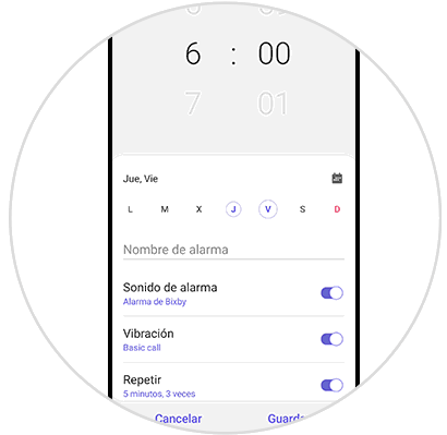Ahora podremos configurar nuestra alarma en función de los parámetros que queramos como es el nombre, el sonido, la vibración, la repetición….