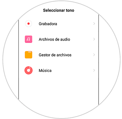 En esta sección, podrás optar por cualquier audio que tengas en tu teléfono, bien sea, una canción que te guste, una grabación, un tono descargado, entre otros. Sea cual sea tu necesidad, lo que tienes que hacer es buscarlo en la carpeta en el cual esté ubicada, pues se aperturarán 4 posibles carpetas que son: