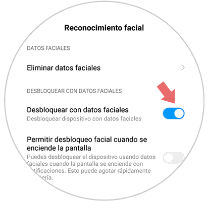 Finalmente, solo se necesita activar la pestaña de “Desbloquear con datos faciales”. Esto se realiza desplazando hacia la derecha una pequeña pestaña que se encuentra situada a la derecha.