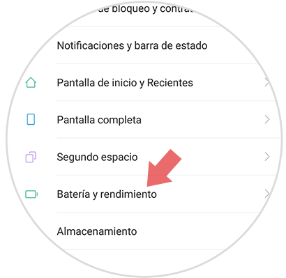 Ahora bien, seguido a esto tienes que desplazarte entre las opciones hasta encontrar una alternativa descrita como “Batería y rendimiento”, que debes seleccionar pulsando sobre ésta.