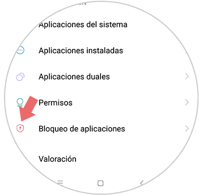 Una vez seleccionado, veremos todo el menú perteneciente a esta entrada, bajamos en la lista, para poder seleccionar la alternativa llamada “Bloqueo de aplicaciones” que está casi entre la última posición.