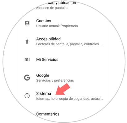 En la nueva pantalla, desliza hasta la opción “Sistema” y pulsa aquí.