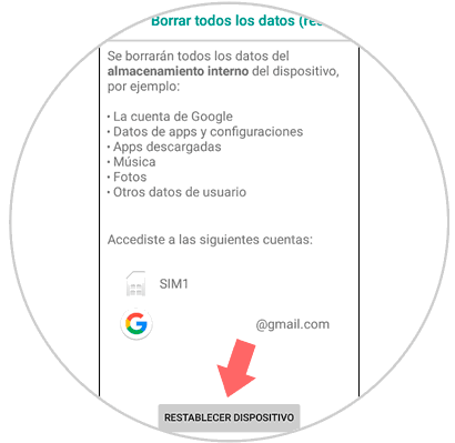 Aparecerás en una pantalla como esta. Aquí pulsa en el botón inferior “Restablecer dispositivo”.