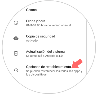 En último lugar verá la opción “Opciones de restablecimiento”, en la cual debes pulsar para continuar.