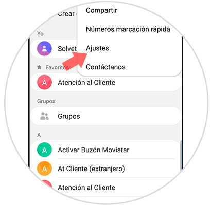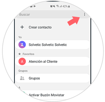 Ahora debes ir a la sección inferior de contactos y pulsar sobre el menú superior de tres puntos de la parte derecha.