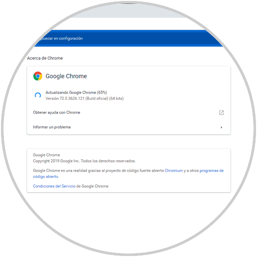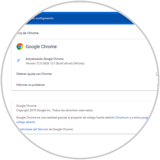 Por defecto, Google Chrome iniciará la búsqueda de nuevas actualizaciones disponibles: