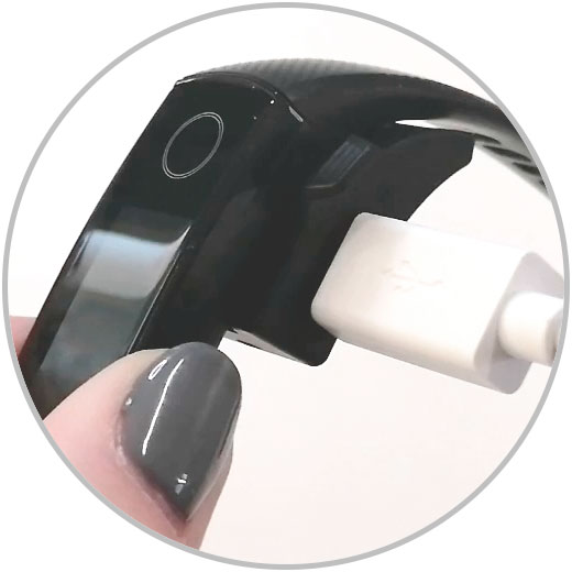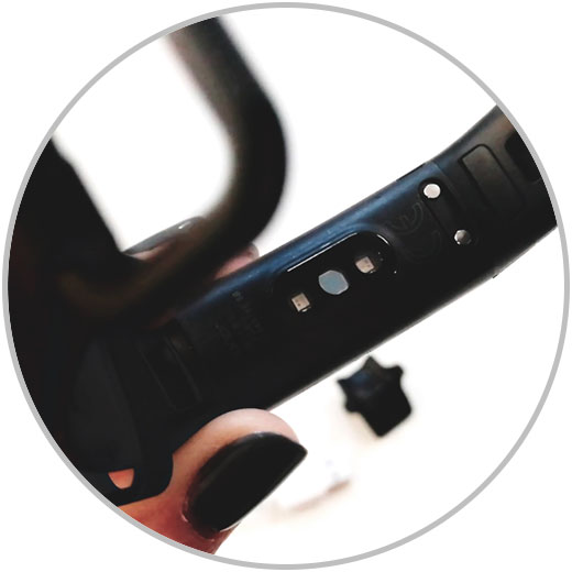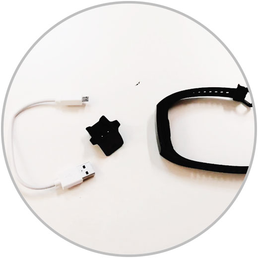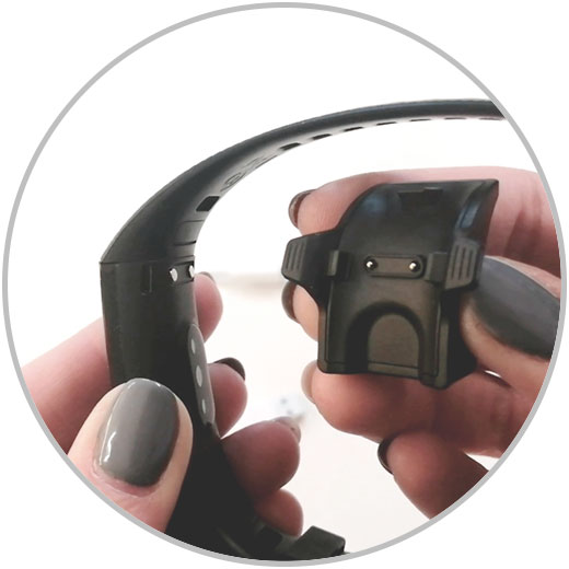 Ahora debemos unir de forma correcta nuestra banda deportiva con la base de carga negra que trae el dispositivo.
