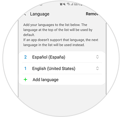 Ante esto, automáticamente el sistema de nuestro dispositivo móvil tendrá dos idiomas, pero se mostrara la opción predeterminada que se encuentra en la configuración.