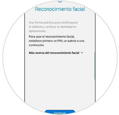 En este punto, el sistema te ira mostrando cuales son las acciones que debes realizar para poder configurar de forma correcta el reconocimiento facial en tu Samsung Galaxy S10 Plus. Lo primero que te solicitara, es que elijas un modo alternativo de bloqueo en caso de que el reconocimiento facial falle.