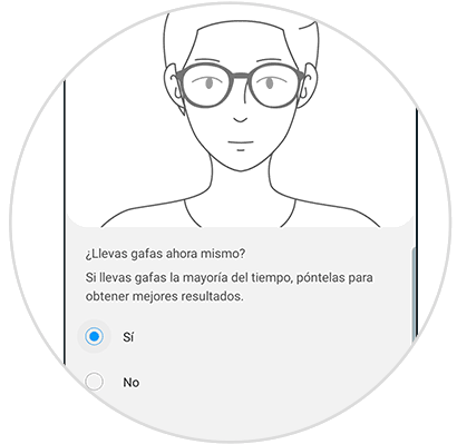 Por último comenzará a registrar tu cara, pero ante esto te preguntará “¿Llevas gafas ahora mismo?” solo selecciona la opción que más te convenga y listo.