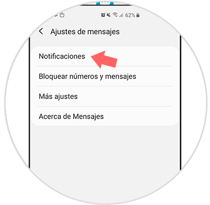 Después, entrarás en una ventana llamada “Ajustes de mensajes”. Ahí tienes que seleccionar la primera opción que te aparece, la cual lleva el nombre de “Notificaciones”.