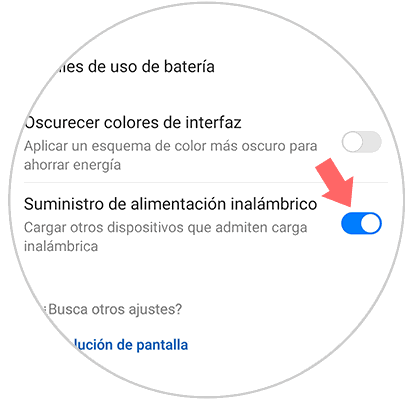 Ahora vas a ver cantidad de opciones. En este caso debes desplazarte hasta la parte inferior y seleccionar “Suministro de alimentación inalámbrico”. Debes activar esta pestaña.