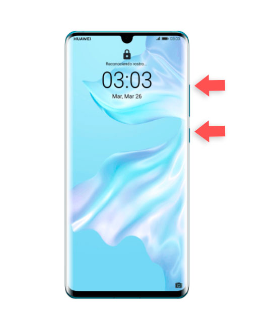 Para grabar la pantalla en el Huawei P30 Pro también puedes utilizar un atajo utilizando los botones laterales tocando los siguientes botones: