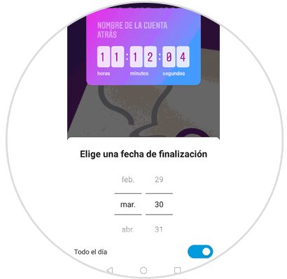 Tendrás que elegir el día que acaba la cuenta atrás en el calendario. También puedes cambiar el título de la cuenta atrás pulsando sobre el mismo.