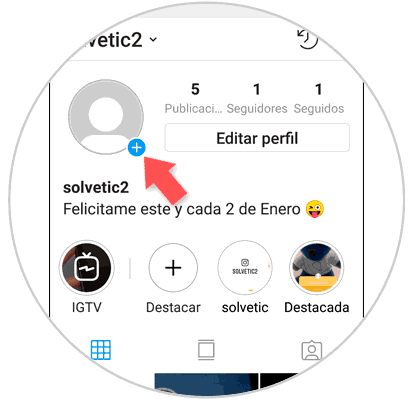 Entra en Instagram y pulsa sobre el icono de la cámara o en el " + " azul situado junto al avatar de tu perfil para crear una nueva historia.