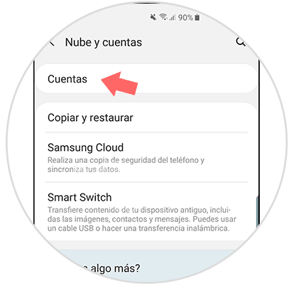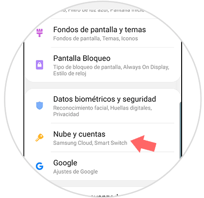 A continuación veras como debajo de la pestaña “Datos biométricos y seguridad” se encuentra una opción que dice “Nube y cuentas”.